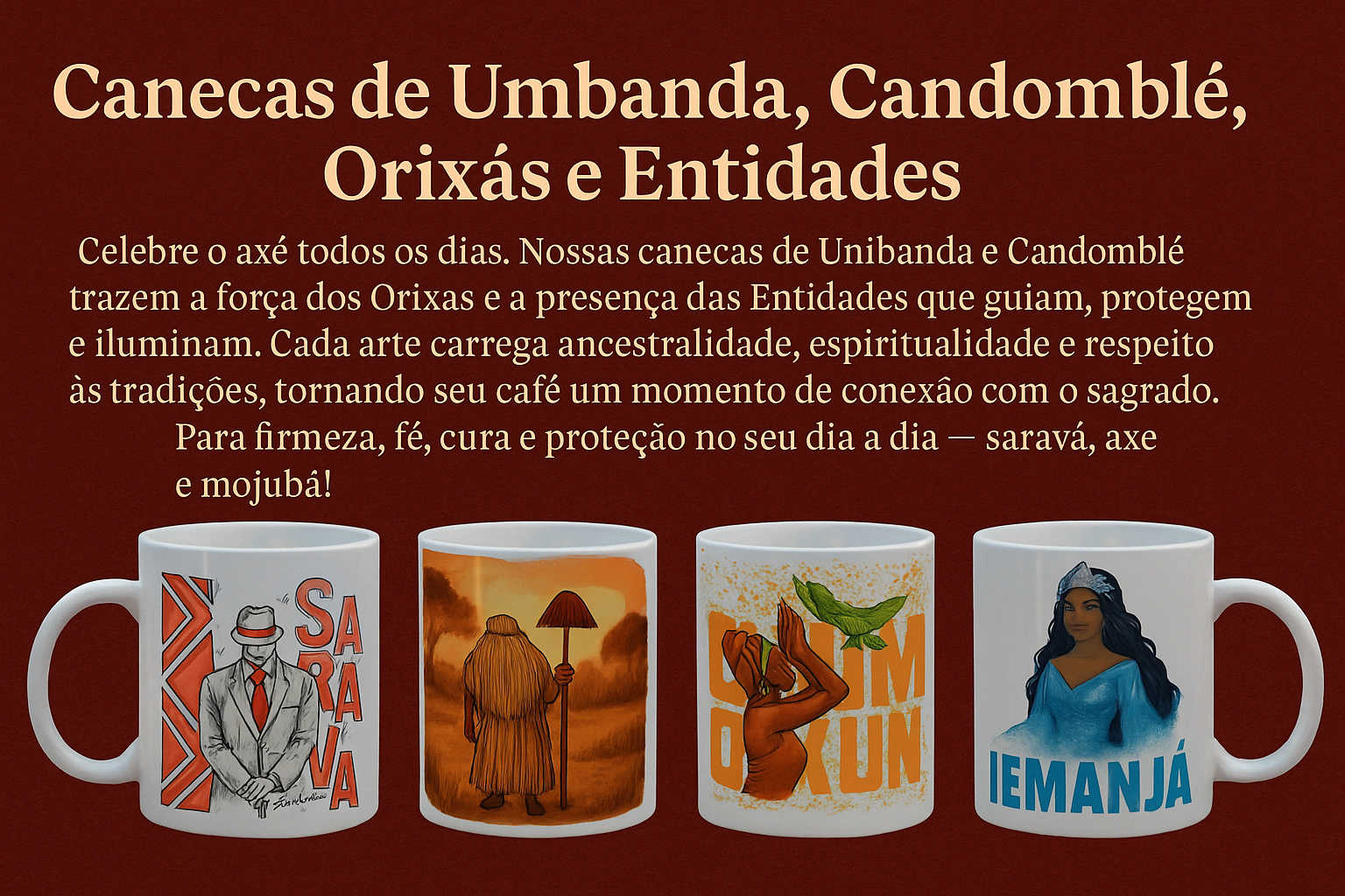 Na Chama Divina, cada brinde é uma expressão de alma e propósito. Nossas canecas de cerâmica, canecas de chopp e squeezes personalizados trazem temas inspirados nos Orixás, Entidades da Umbanda, Medicina da Floresta e Saberes Esotéricos, unindo arte, fé e identidade. Materializamos sua ideia com exclusividade — seja para empresas, festas, eventos ou datas comemorativas — transformando sua marca, emoção ou mensagem em peças únicas, cheias de energia e significado, para encantar clientes, amigos e familiares.