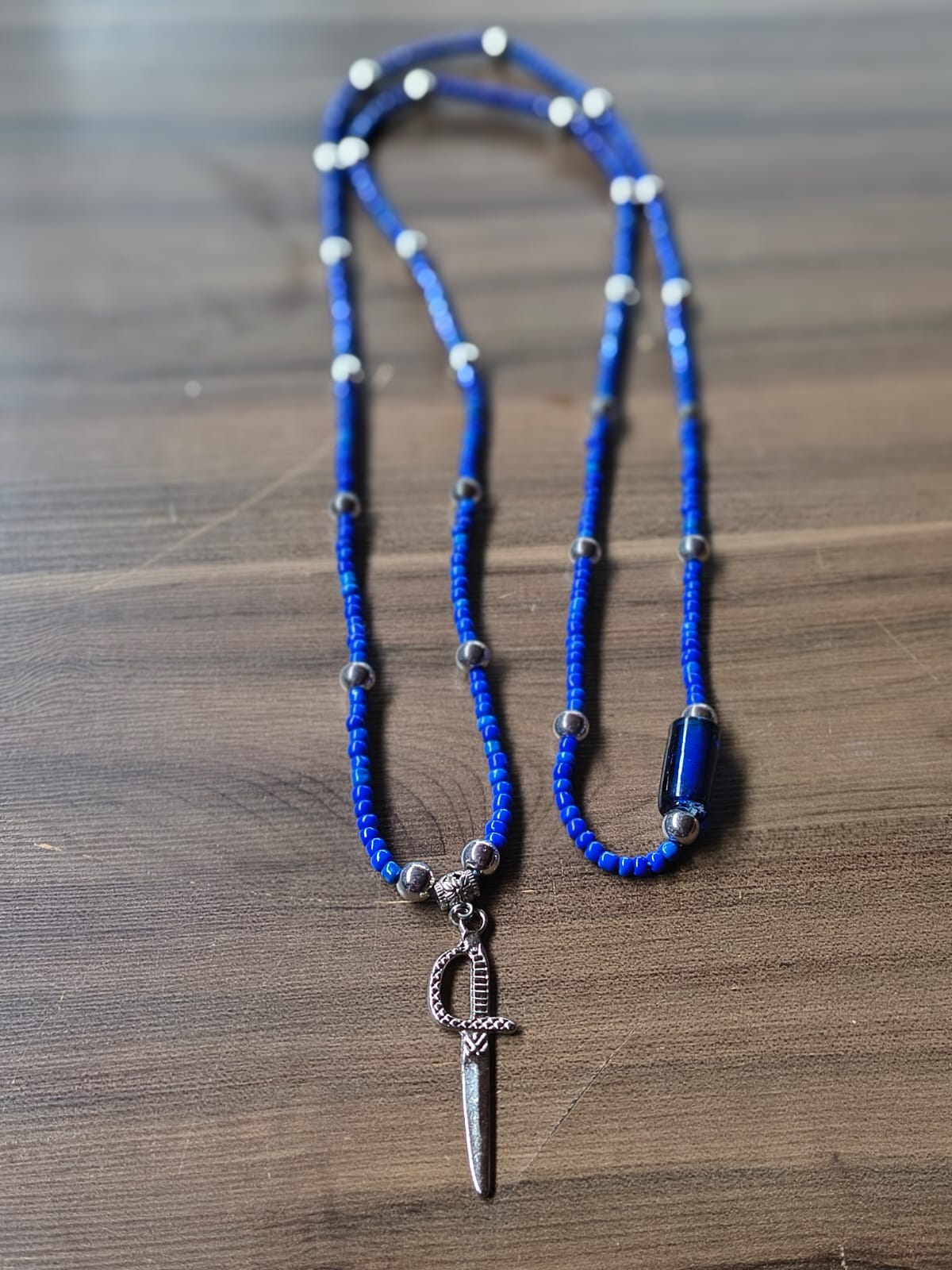 Este fio de contas é uma homenagem a Ogum, orixá guerreiro que simboliza determinação, justiça e vitória. Uma peça espiritual carregada de significado, ideal para quem busca conexão com a energia de Ogum e força em sua caminhada.