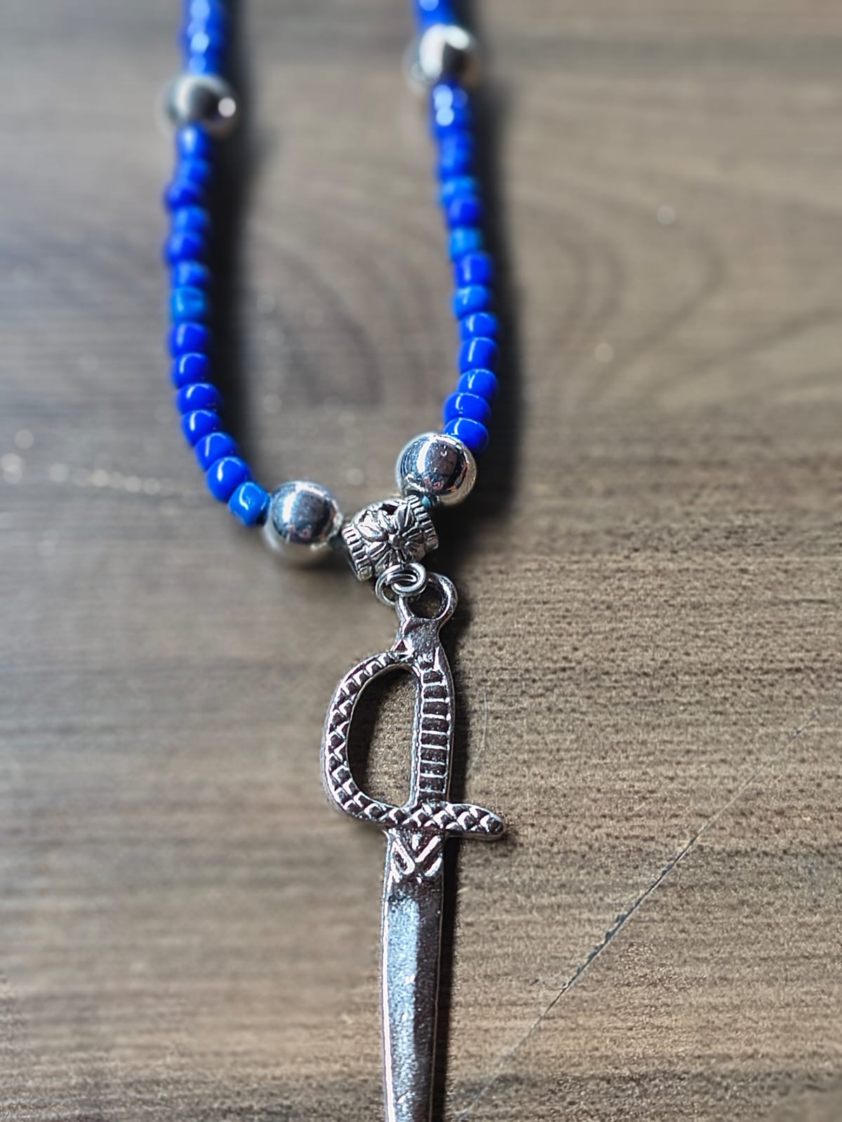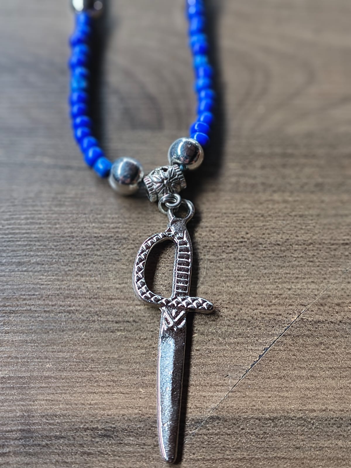 - Pingente: Espada metálica, símbolo de força, coragem e proteção.