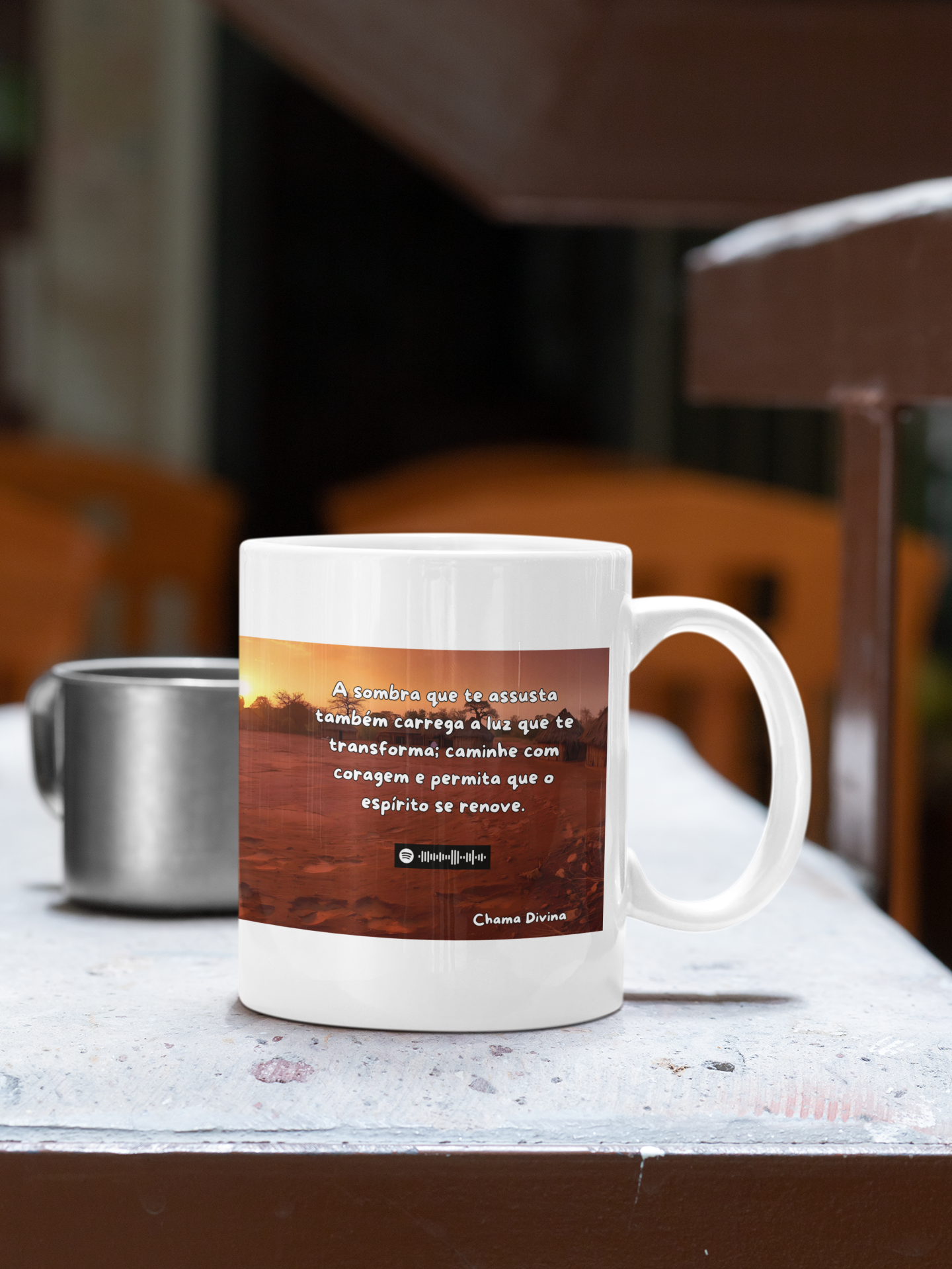 Esta caneca possui um QR Code exclusivo do aplicativo Spotify. Ao escanear, você será direcionado para uma música especialmente selecionada, criada para fortalecer sua conexão com a energia de Omolu, auxiliando em processos de cura, renovação, introspecção e fortalecimento espiritual.